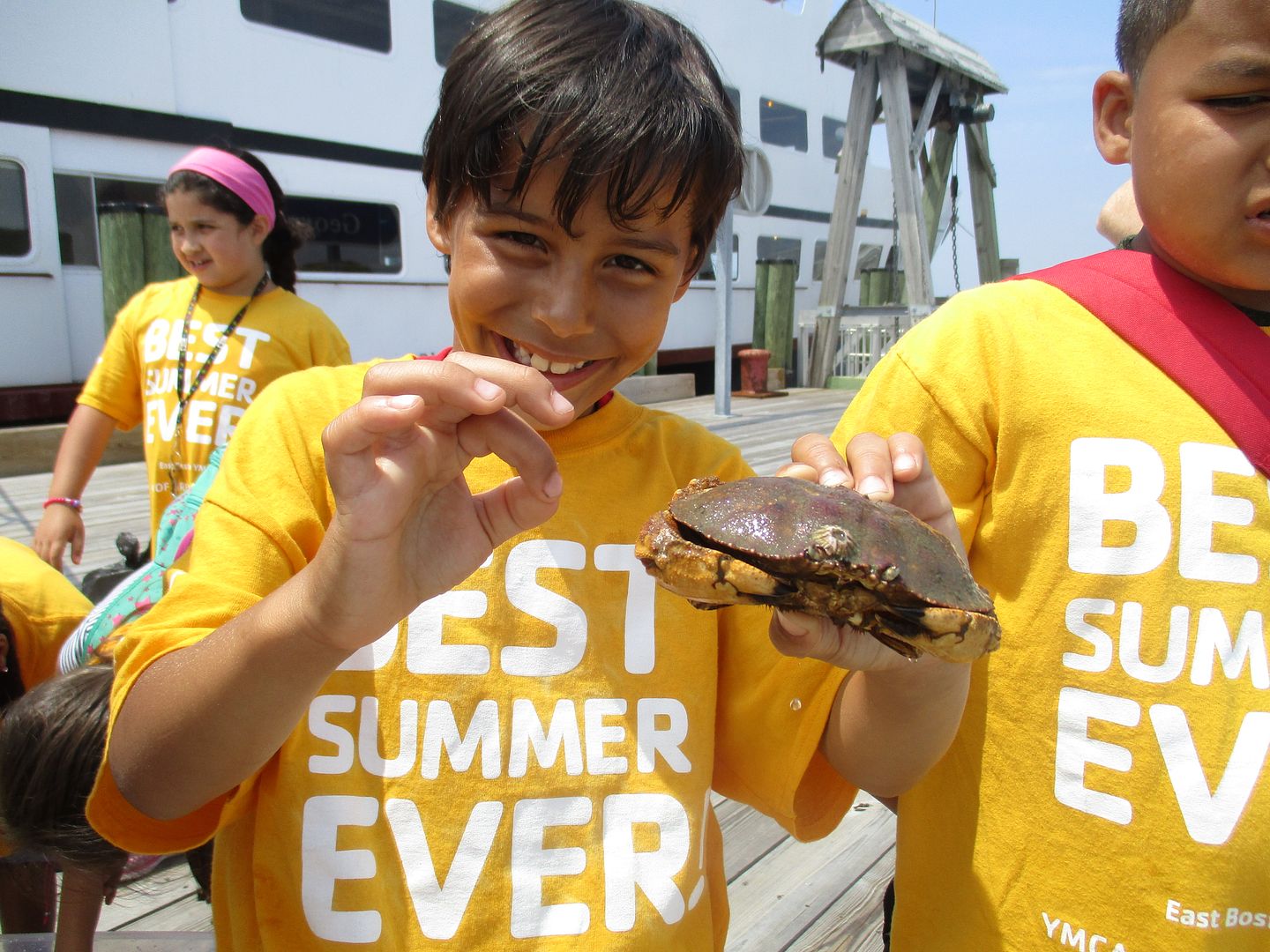 Andrea set the bar high for fishing this summer at SHSB. She helped kids catch not one but five striped bass! This has never happened before at George's Island or any other site. We also caught Red Crabs on the second day on George's. It was fun to talk to kids about what kind of animals crabs are and how to tell a male and a female apart. Rock Crabs are also a native species that have been recently outcompeted by Asian Shore Crabs and Green Crabs, so it was great to catch many of them instead of invasive species.