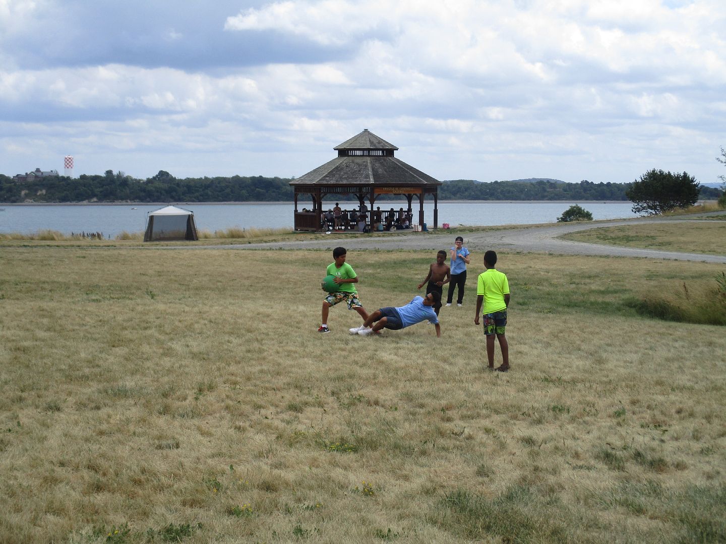 I never tough that I'll be more active when an small amount of kids are going to the island than when more kids are going. Kick ball and Football are the sports that the kids want to play the most. Trough out this whole summer, I've been playing kick ball more than any other sport. Every game has something different. On some games, the kids do not know what to do. On others, the kids do not know how to kick or where to run. On this one, the majority of the kids knew it all. The majority knew how to kick, where to run, and catch the ball.