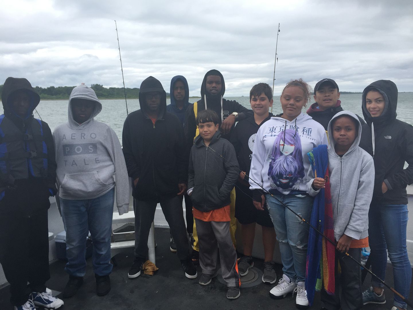 Hi everyone! Yesterday was our biweekly and first fishing trip with the kids in fishing club since our first one got cancelled. In the morning, we grabbed all the rods and waited for the boat on the pier til it arrived at about 9:30. All the kids hopped on the boat and were very excited to see what amazing things they would catch on our trip. To start off, the captain, Charlie, caught a big Black Sea bass and it was really exciting because I'd never seen one before and many of the kids hadn't either so they asked millions on questions about it. After going deeper into the harbor, it was time to put bait on our fishing rods and fish on. We used sea worms for bait which I was completely terrified of touching because of their creepy pinching mouths, but soon I'll get over the fear of sea worms (just like I did my fear of crabs). Anyway, our first catch besides the captain was from a little boy named Adrian, it was really nice to see the look on his face when he felt something pulling on his rod and then yelled "I think I caught a fish! I think I caught a fish!" He railed it up all on his own and then on the end of his rod we saw a flounder! He had caught a flounder which was definitely longer than 12 inches so we got to keep it. After the kids all saw, they all got encouraged to keep on fishing because they could be the next to catch something! I myself fished for a while in hopes of catching a flounder, a skate or maybe even a striped bass but unfortunately I had no luck in that, instead I caught some rock crabs that refused to let go of my hook! Even though I didn't catch anything crazy, I still had a good time watching the kids catch flounders, striped bass, and even a couple of skates. In the end we got to keep 5 fish, all which the kids had caught. They were all really happy and it was a really fun and relaxing day full of fishing and I can't wait for our next fishing trip to see what more we will find in the harbor!